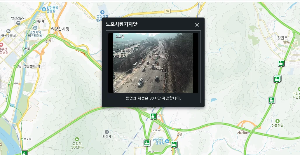 - 카메라 아이콘 선택: 관심 있는 도로 구간이나 교차로에 위치한 카메라 아이콘을 클릭합니다.
