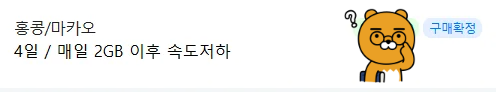 저는 3박 4일 홍콩 여행이었는데 여유있게 사용하고 싶어서 매일 2GB 사용 후 속도저하 상품을 구매했어요.